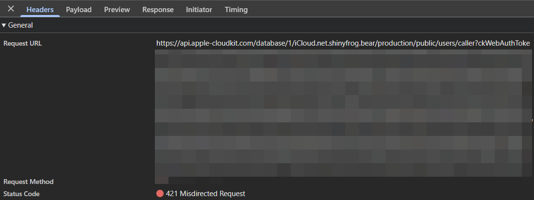 +1 — Even with “Trust this device” enabled, I have to sign in to iCloud every time I open Bear Web, even after a simple refresh. In DevTools, the CloudKit database request returns 421 AUTHENTICATION_REQUIRED and redirects to the Apple ID sign-in page.