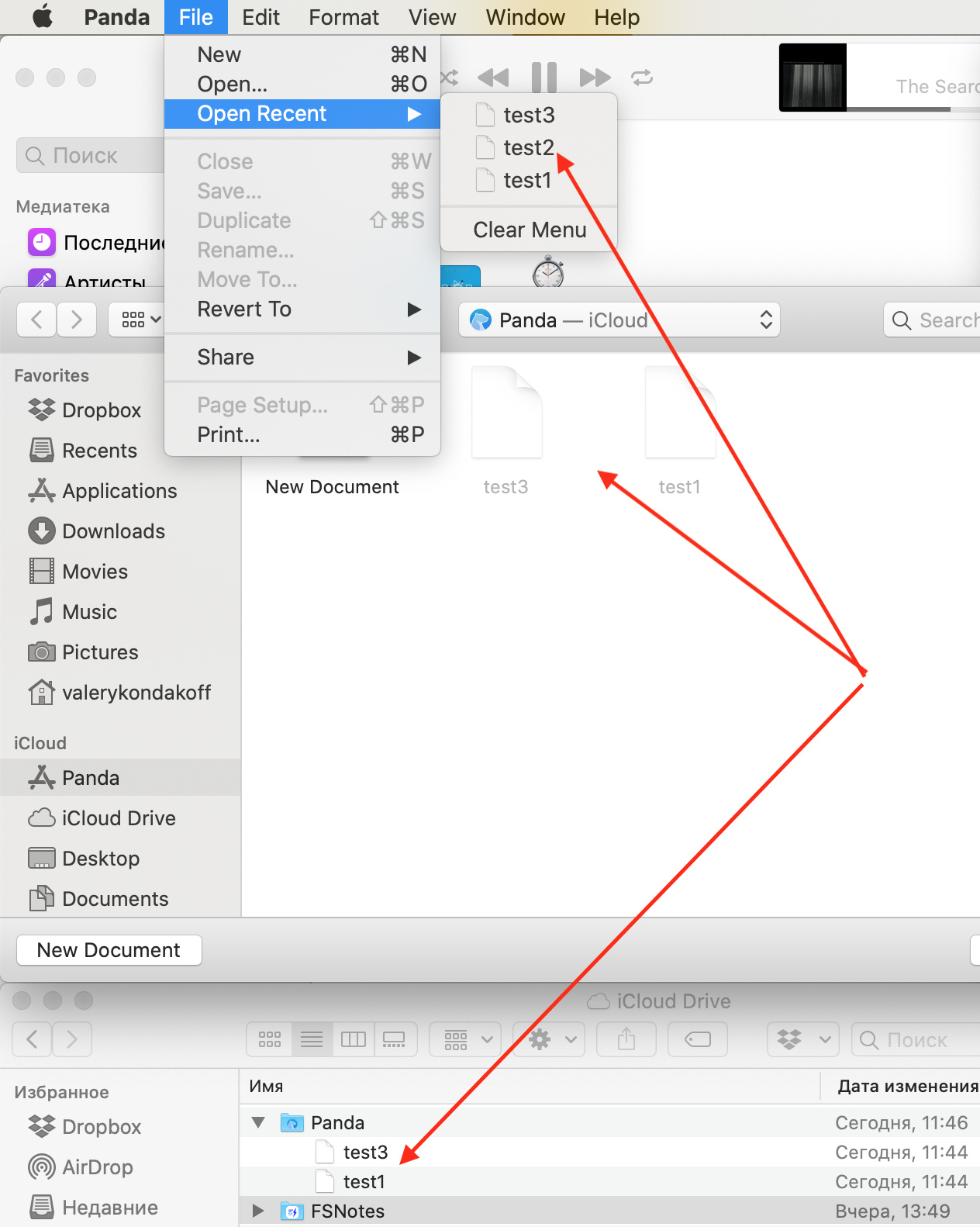 Create 3 documents and save it as ‘test1’, ‘test2’ and ‘test3’ in Panda folder on iCloud